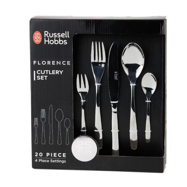 - Add a touch of sparkle to your dinner table with the timeless 20-piece Florence cutlery set from Russell Hobbs which is made to last.