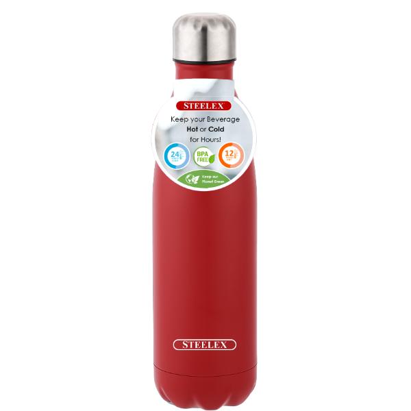 Steelex Vacuum Bottle 'Red' 500ml Stainless Steel