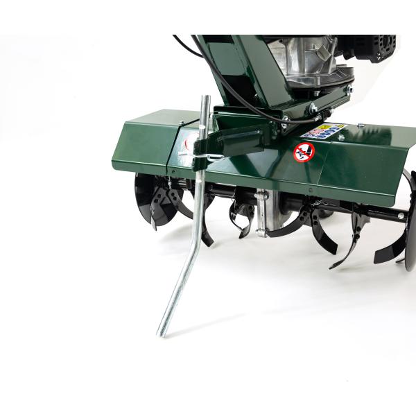 - It combines a fixed handlebar with perfectly positioned controls for excellent comfort and manoeuvrability; and it features a transport wheel for easy manoeuvrability and an adjustable depth-skid that means you can be as gentle or aggressive in approach as required (the maximum tilling-depth is 13cm).