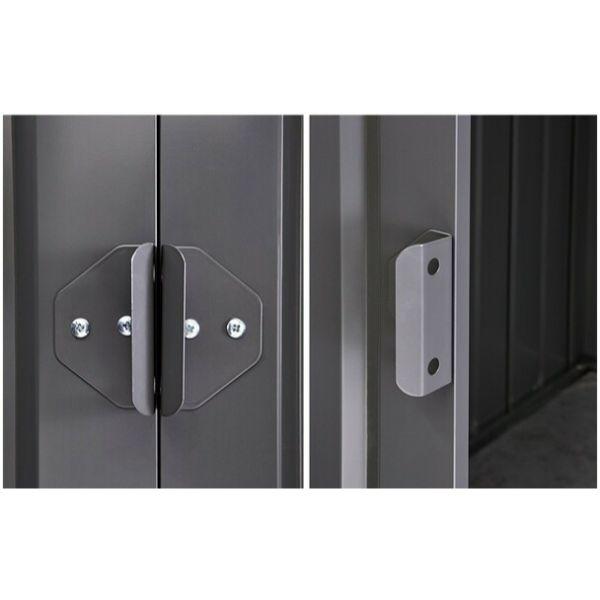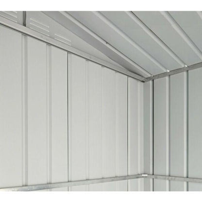 - Non-combustible shed providing a rust-free, durable work space and storage solution
