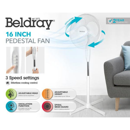 - This Beldray stand fan has 3 speed settings and an adjustable stand that extends up to 125 cm in length for optimum user control.