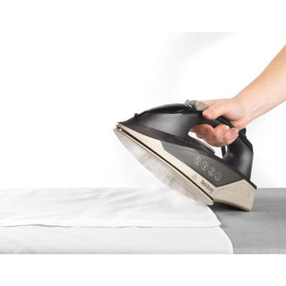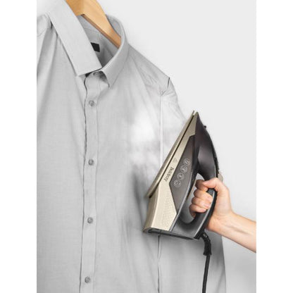 - The iron is designed with 100 G/min steam shot providing a powerful steam burst and a water spray function to remove tough creases.