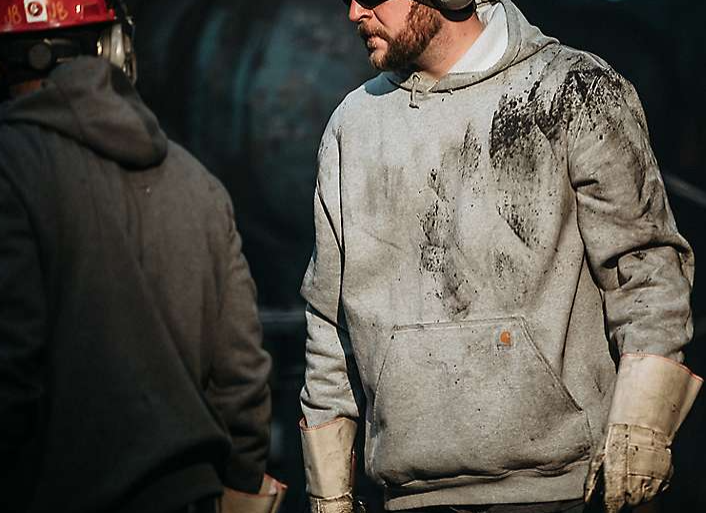 - Stretchable, elastane reinforced rib knit cuffs and waistband Carhartt label sewn on pocket