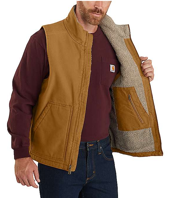 Carhartt Loose Fit Washed Duck Sherpa Lined Mock Neck Vest Brown