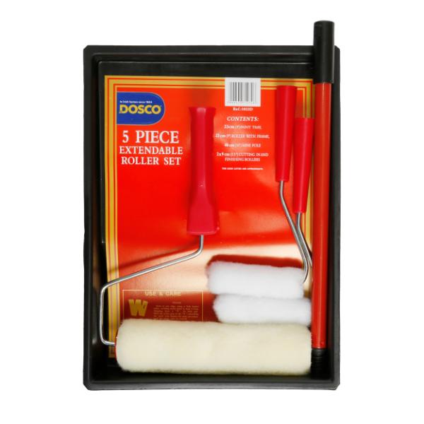 - The Dosco 5 Piece Extendable Roller Set includes all the tools necessary for painting rooms of all sizes around the house. Attach the included 16″ (40cm) mini poll to the 9″ (23cm) roller to paint walls and ceilings with ease. Included 9″ paint tray and 2
