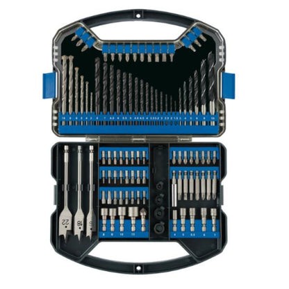 - Contents: 15 x HSS drill bits: Ranging from 1.5mm to 8mm. 6 x masonry drill bits: Sizes 3mm, 4mm, 5mm, 6mm, 8mm, and 10mm. 6 x wood drill bits: Sizes 3mm, 4mm, 5mm, 6mm, 8mm, and 10mm. 3 x flat wood bits: Diameters 16mm, 18mm, and 22mm. 1 x Countersink bit. 1 x Magnetic bits holder (60mm). 9 x nut driver bits: Sizes 4mm, 5mm, 5.5mm, 6mm, 7mm, 8mm, 9mm, 10mm, and 12mm. 4 x drill stopper bits: Sizes 5mm, 6mm, 8mm, and 10mm.
