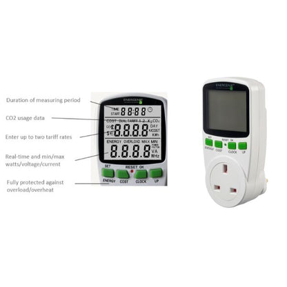- Device show the duration of measuring period, CO2 usage data, real-time and min/max Watts/Voltage/Current