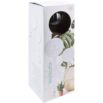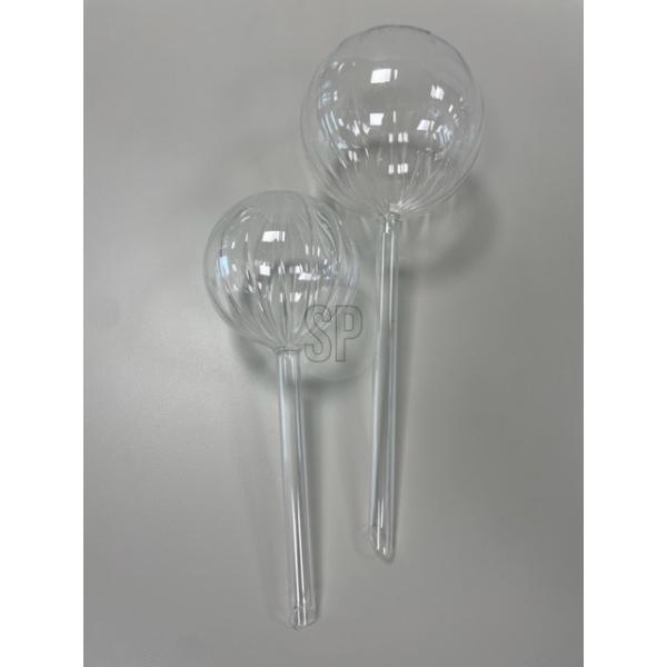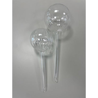 - Each waterer consists of a glass ball-shaped reservoir with a long tube attached. The glass ball is filled with water, and the tube is inserted into the soil of your potted plant.