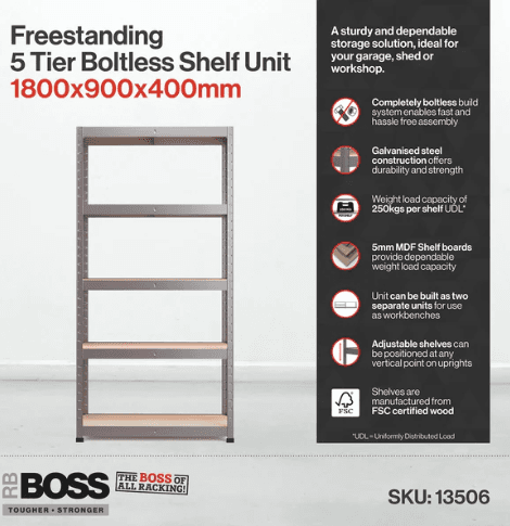 RB BOSS 1.8m Galvanised Boltless Shelving 5 Tier Unit