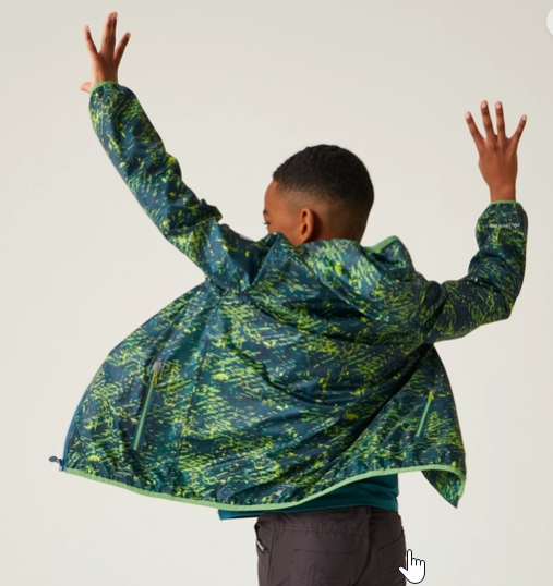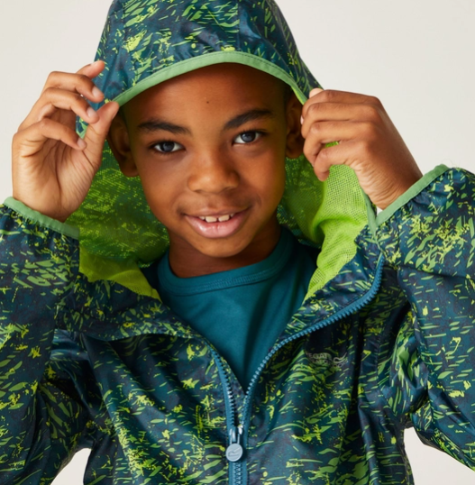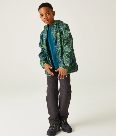Regatta Printed Lever Kids Waterproof Shell Jacket Moroccan Blue Scratch Print