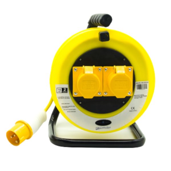 Rugged 25mtr 16Amp 110Volt 2 Socket Cable Reel Yellow