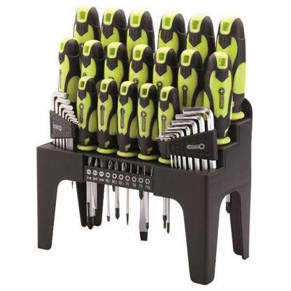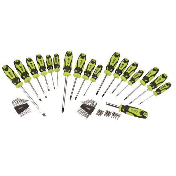 - 3 x Draper Draper TX - STAR® screwdrivers: T8 x 75mm, T10 x 100mm, T15 x 100mm; 1 x 1/4"" magnetic bit holding driver; 3 x 1/4"" plain slot insert bits: 5, 6, 7mm; 3 x 1/4"" PZ TYPE insert bits: No.1, No.2, No.3; 4 x 1/4"" Draper TX - STAR® bits: T7, T8, T9, T10; 8 x Metric hex keys: 1.5, 2, 2.5, 3, 4, 5, 5.5, 6mm