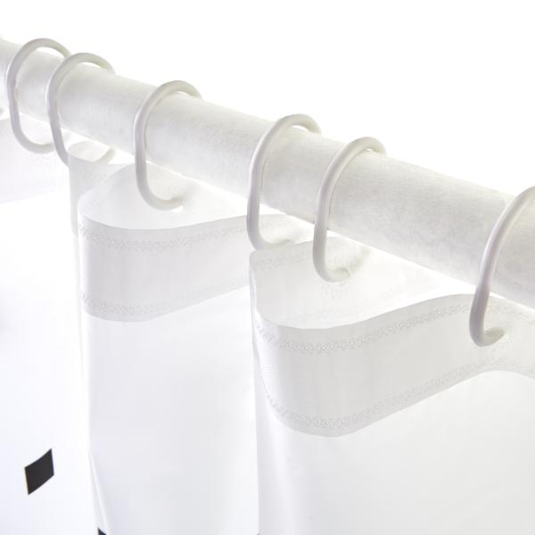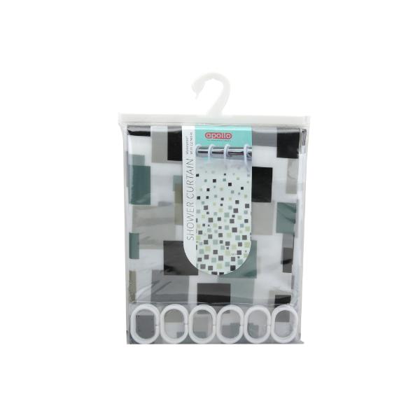 - Say goodbye to shower splatter with this shower curtain from Apollo Housewares! Designed to keep water where it belongs, this curtain ensures a mess-free shower experience every time. Complete with easy-to-use hooks for hassle-free installation, youll never have to worry about water escaping your shower again. Enjoy a cleaner, more organized bathroom with our splatter-resistant solution!