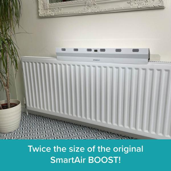 - USE IT DON'T LOSE IT: Redirect warm air from your radiators with our SmartAir BOOST XL fan that prevents heat from instantly rising to the ceilings. Instead it accelerates the warm air forward, boosting and improving the heat distribution more effectively and keeping the warmth at living height. Therefore heating your living space faster and more efficiently!