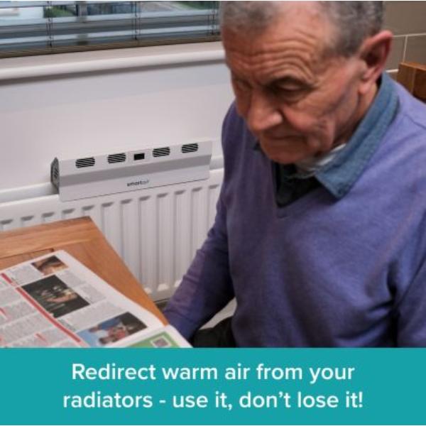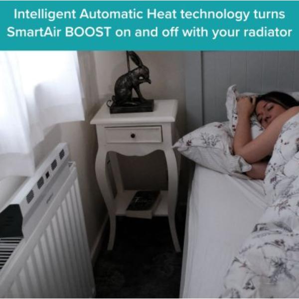 - Redirect warm air from your radiators: rather than letting all your heat rise to slowly heat your room from the ceiling down, SmartAir Boost redirects rising heat from the radiator and accelerates it forward, boosting and improving the heat distribution more effectively.