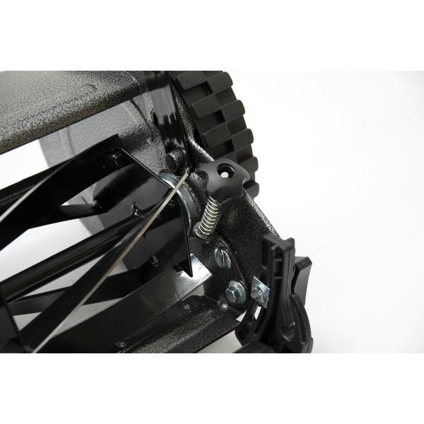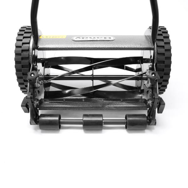 - It’s equipped with a compact 30cm five-bladed cylinder which cuts with a precise scissor-type action - the grass won’t be torn, as can be the case with a rotary blade, and you’ll be left with a neat, attractive finish with no bruising or discolouration.