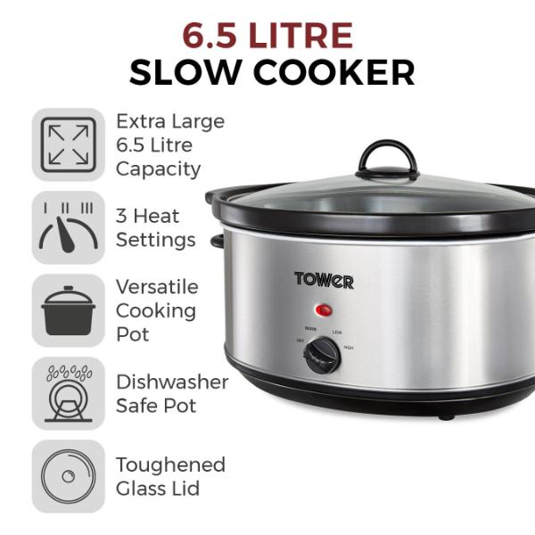 Tower T16040Y Stainless Steel Slow Cooker 6.5L
