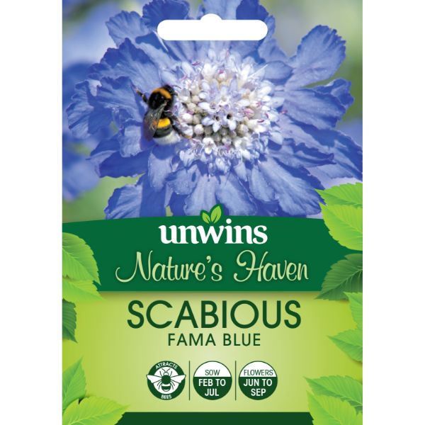 Unwins Seed Packet Natures Haven Scabious Fama Blue