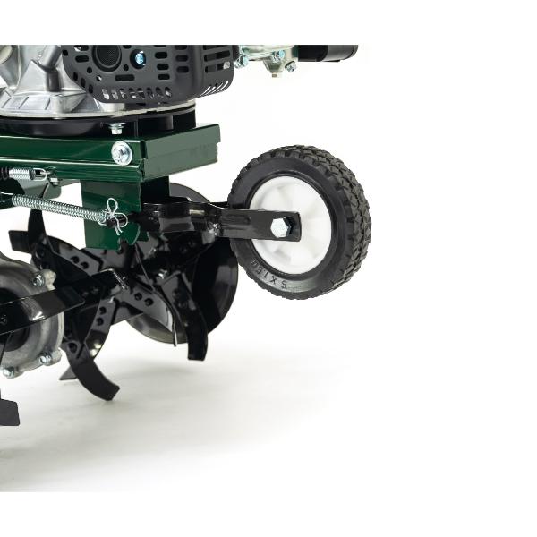 - It combines a fixed handlebar with perfectly positioned controls for excellent comfort and manoeuvrability; and it features a transport wheel for easy manoeuvrability and an adjustable depth-skid that means you can be as gentle or aggressive in approach as required (the maximum tilling-depth is 13cm).
