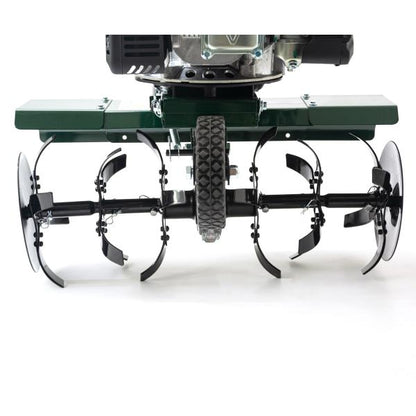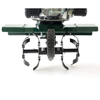 - Supplying the robust, sharp-tipped steel tines with a huge 2.9kw of power via high-torque gearing is a reliable 161cc OHV engine.