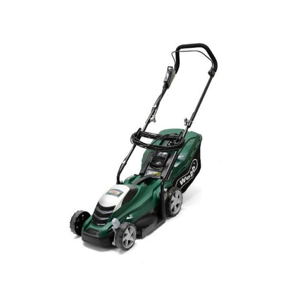 - Compact and easy to manoeuvre, the UK-designed Webb WEER33 ‘Classic’ is worth serious consideration if you’re maintaining a smaller lawn. Quality features include a 10-metre mains-lead for excellent freedom of movement; a poly deck that makes it easy to keep clean; and a folding handle for space-saving storage. This 33cm model weighs just 8.8kg.
