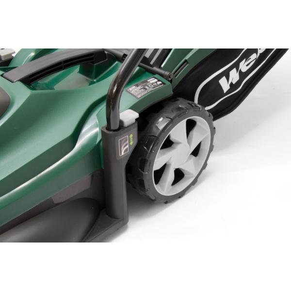 - The Webb WEER33 ‘Classic’ Electric Rotary-Mower combines an adjustable cutting-height (25-65mm) with both bagging and rear-discharge capabilities, so it can be set-up to suit the conditions you’re confronted with on any given day (height-selection is via only one lever).
