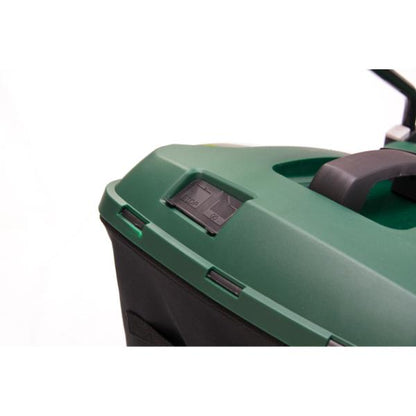 - It’s fitted with a collapsible handlebar that works with its compact design to make it simple to store and transport; and it comes with a spacious 35-litre collection-bag that keeps downtime to a minimum.