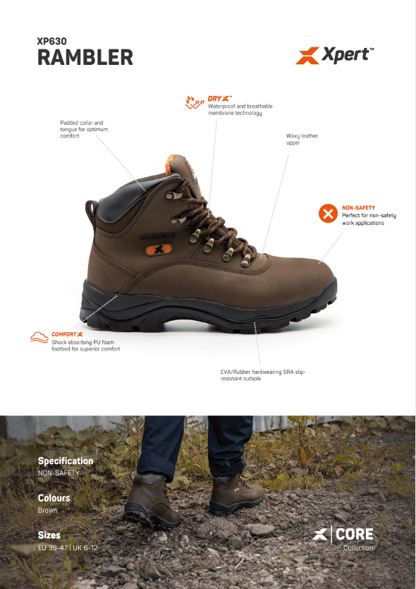 - EVA/ Rubber hardwearing, SRA slip resistant outsole